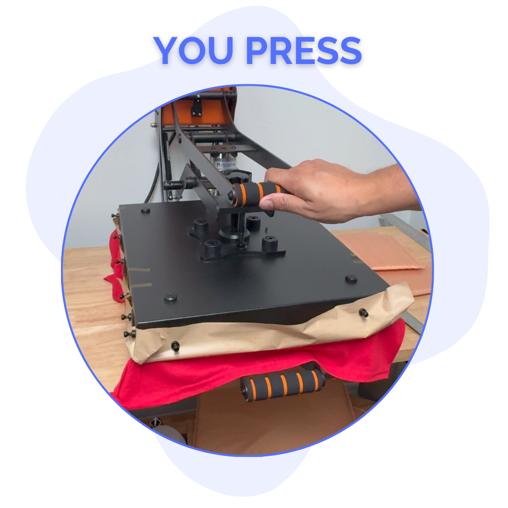 Once you received the gang sheet, cut each artwork individually and press your DTF transfer onto the garment using a Heat Press or iron.