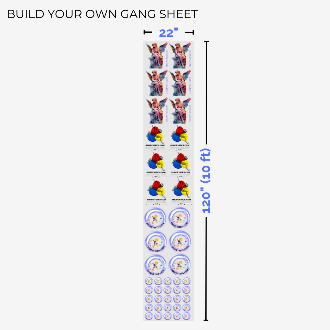 Create your Sheet using our DTF TRANSFER BUILDER product HERE to gang them all in one on the sheet size of choice.